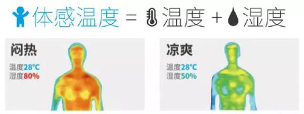 相關(guān)研究發(fā)現(xiàn):人體體感的舒適度,不單單是溫度決定,是由溫度和濕度共同決定。