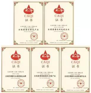 大金榮獲由中國質(zhì)量檢驗協(xié)會、行業(yè)協(xié)會頒發(fā)的“全國空調(diào)器行業(yè)質(zhì)量領(lǐng)軍企業(yè)”、“全國空調(diào)器行業(yè)質(zhì)量領(lǐng)先品牌”、“全國質(zhì)量檢驗穩(wěn)定合格產(chǎn)品”、“全國質(zhì)量信得過產(chǎn)品”及“全國質(zhì)量信用先進企業(yè)”5項殊榮。其內(nèi)容涵蓋了產(chǎn)品品質(zhì)、行業(yè)地位、企業(yè)誠信等方面,標志著大金從產(chǎn)品到品牌方面皆處于行業(yè)翹楚地位,也是對其在產(chǎn)品、技術(shù)、服務(wù)、高品質(zhì)等多維度給予的肯定。