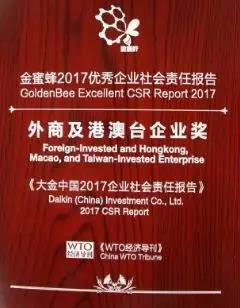 “金蜜蜂企業(yè)社會責(zé)任報告評估體系”,從結(jié)構(gòu)完整性、內(nèi)容實質(zhì)性、績效可比性、報告可信度、可讀性、創(chuàng)新性等六個維度對《大金中國2017企業(yè)社會責(zé)任報告》高度認可,認為“報告披露了大金中國將自身發(fā)展理念與聯(lián)合國2030可持續(xù)發(fā)展目標深度融合,以‘發(fā)掘下一個需求,創(chuàng)造新的價值’為宗旨,攜手利益相關(guān)方創(chuàng)造經(jīng)濟、社會、環(huán)境綜合價值的行動。是一份高水準的在華外商投資企業(yè)社會責(zé)任報告”。