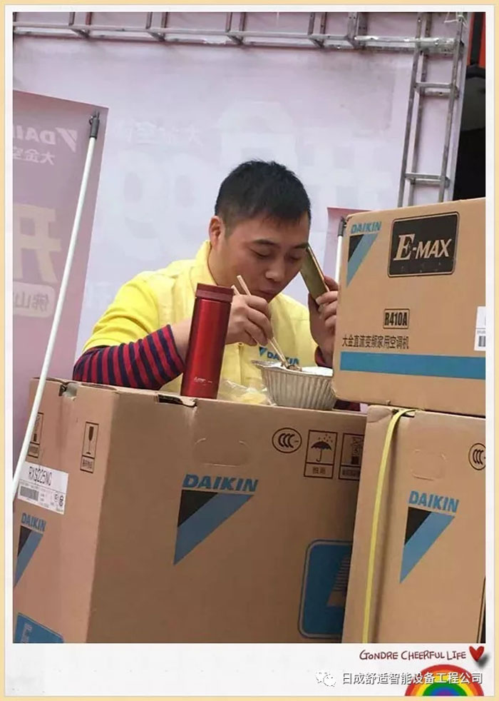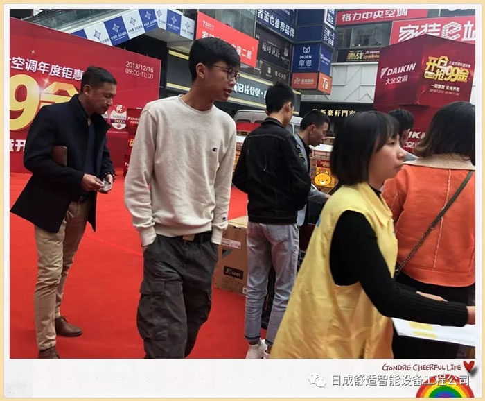 回眸昨天,寒冷,饑餓都抵擋不了小黃人的熱情,早早布置好現(xiàn)場(chǎng),為啥?就是為了大金空調(diào)的粉絲們,可以更快地購(gòu)買到自己喜歡的空調(diào)!