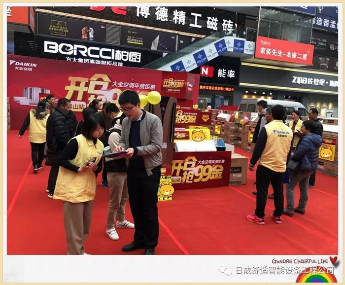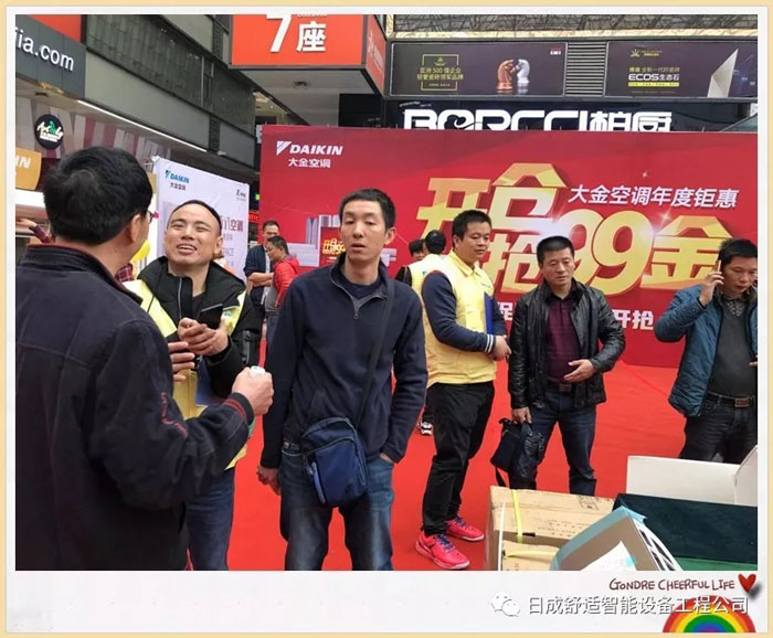 活動(dòng)時(shí)間為上午的9時(shí)正,但8點(diǎn)多就迎接了我們的第一位客人,天氣難不了我們,更難不了我們忠實(shí)粉們,在此我向你們真心說聲“謝謝”,太感謝你們對(duì)成日公司的支持,對(duì)大金空調(diào)的厚愛!